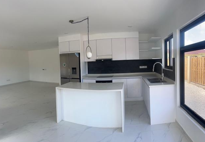 Modern open plan living, dining & kitchen with small island