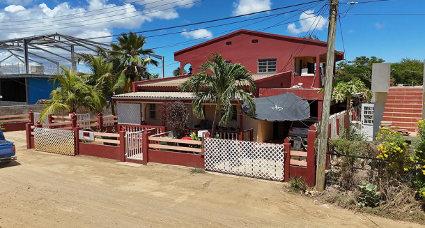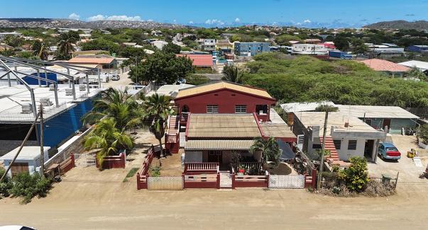 For sale at Kaya Carmen 13: a beautiful two-story house with outbuildings, situated on a generous plot of 553m2 freehold land. This house is in the spatial development plan with a mixed-use designation. The house, divided into five parts, offers on the ground floor three charming living rooms, three comfortable bedrooms, two kitchenettes, a fully equipped kitchen, three shower-toilet facilities, a spacious hall, a cozy porch, two beautiful terraces, and a convenient roofed area.