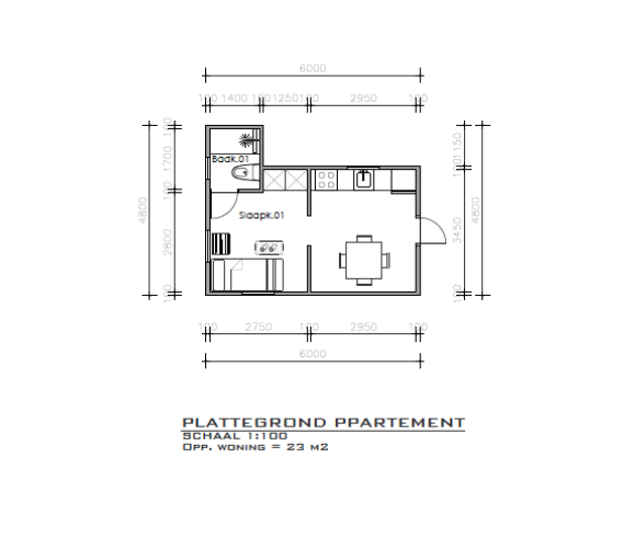 Apartment: Includes a bedroom and bathroom, with partially masonry and wooden walls.